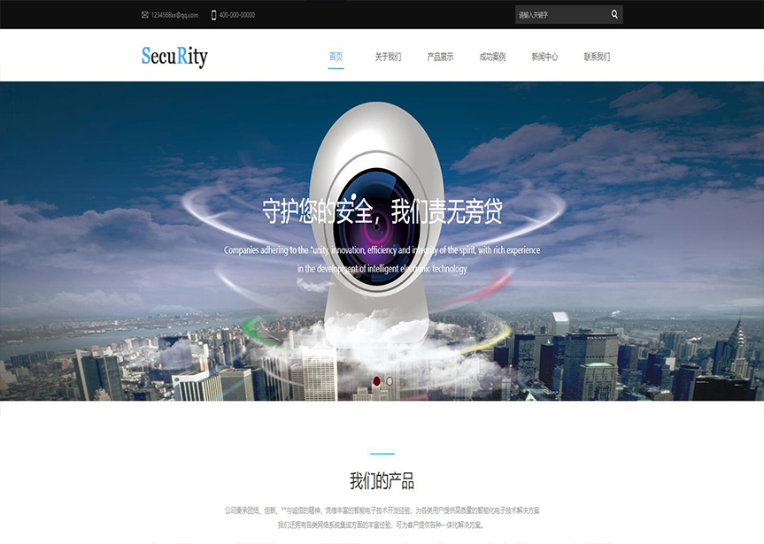 模板名稱:(帶手機版數(shù)據(jù)同步)自適應安防監(jiān)控器材類藍色網(wǎng)站模板