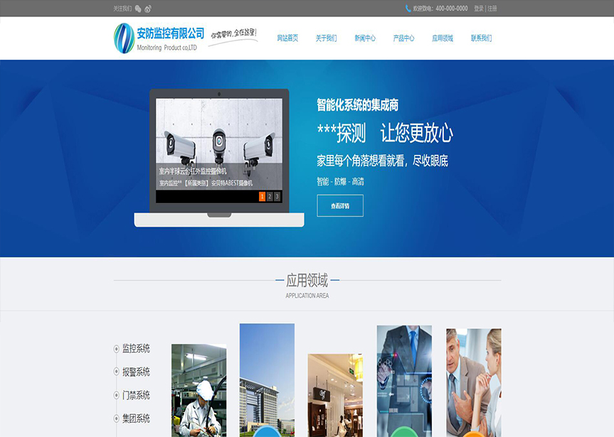 模板名稱:(帶手機版數(shù)據同步)自適應安防監(jiān)控器材類藍色網站模板