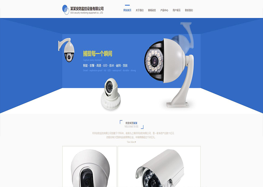 模板名稱:(帶手機版數據同步)自適應安防監(jiān)控器材類藍色網站模板