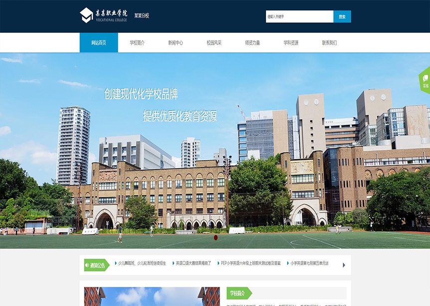 模板名稱:(帶手機(jī)版數(shù)據(jù)同步)自適應(yīng)職業(yè)學(xué)校網(wǎng)站模板