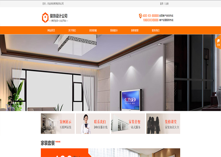 首頁 / 設(shè)計(jì)、裝飾 / (帶手機(jī)版數(shù)據(jù)同步)自適應(yīng)設(shè)計(jì)裝飾類橙色通用網(wǎng)站模板