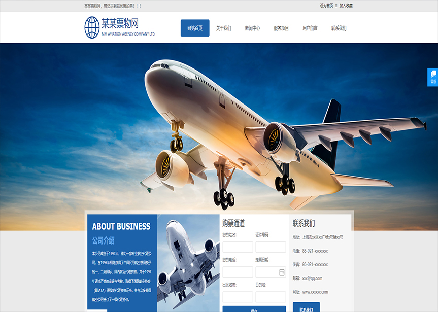 模板名稱:(帶手機版數(shù)據(jù)同步)自適應(yīng)票務(wù)類藍色通用網(wǎng)站模板