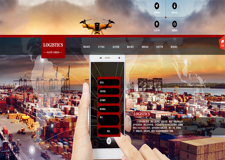 模板名稱:(帶手機(jī)版數(shù)據(jù)同步)自適應(yīng)物流運(yùn)輸類紅色通用網(wǎng)站模板