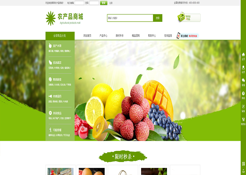 (帶手機版數(shù)據(jù)同步)自適應商城類農(nóng)產(chǎn)品通用網(wǎng)站模板