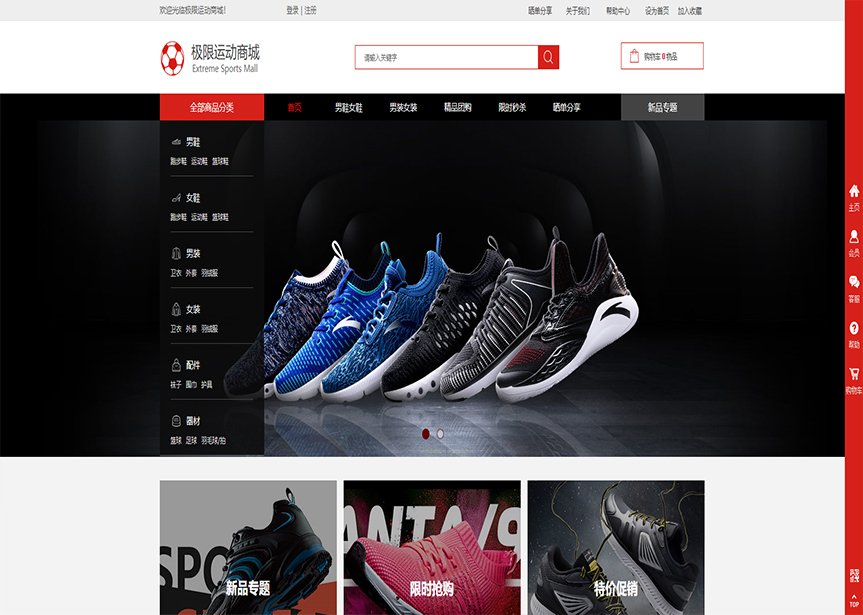 模板名稱:(帶手機(jī)版數(shù)據(jù)同步)自適應(yīng)商城類運(yùn)動(dòng)商城通用網(wǎng)站模板