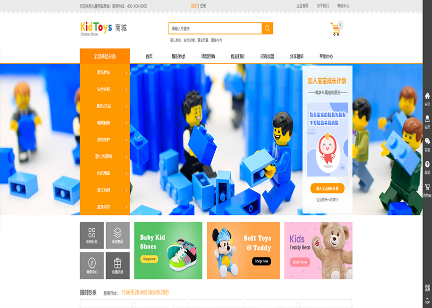 模板名稱:(帶手機版數(shù)據(jù)同步)自適應(yīng)商城類兒童玩具通用網(wǎng)站模板