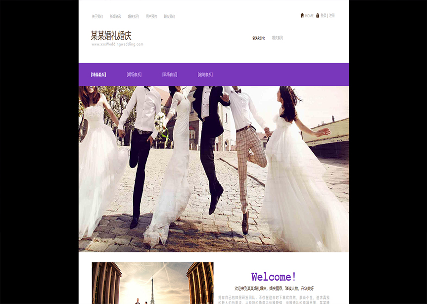 網站模板名稱:(帶手機版數據同步)自適應婚禮婚慶類紫色網站模板