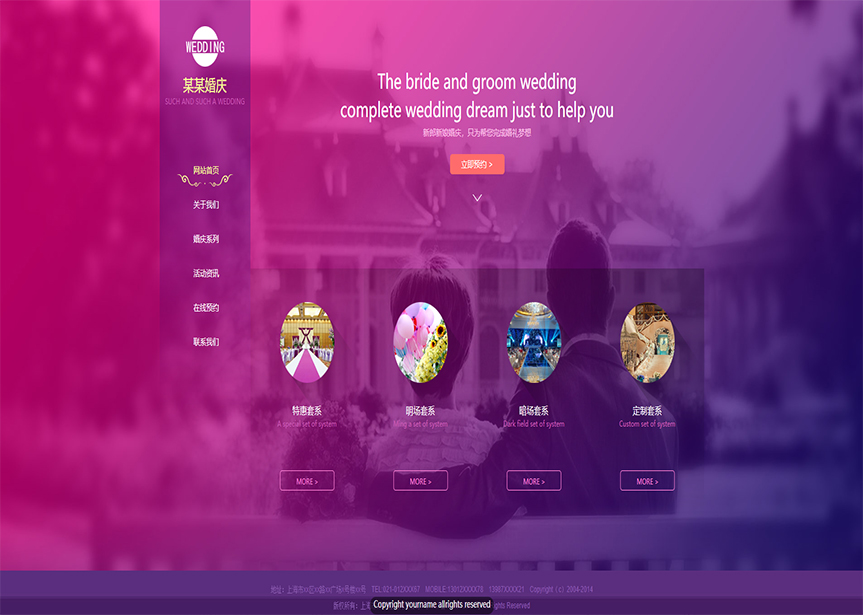 網(wǎng)站模板名稱:(帶手機(jī)版數(shù)據(jù)同步)自適應(yīng)婚禮婚慶類紫色網(wǎng)站模板