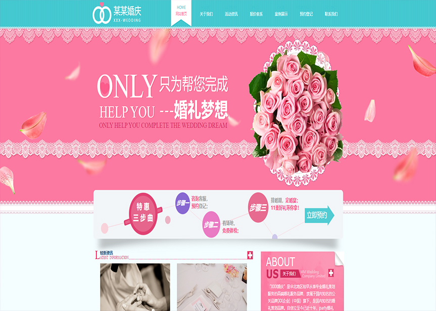 (帶手機(jī)版數(shù)據(jù)同步)自適應(yīng)婚禮婚慶類粉色網(wǎng)站模板