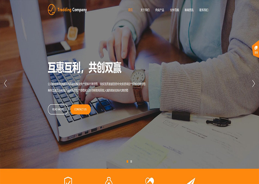 首頁(yè) / 貿(mào)易、出口 / (帶手機(jī)版數(shù)據(jù)同步)自適應(yīng)貿(mào)易出口類橙色網(wǎng)站模板