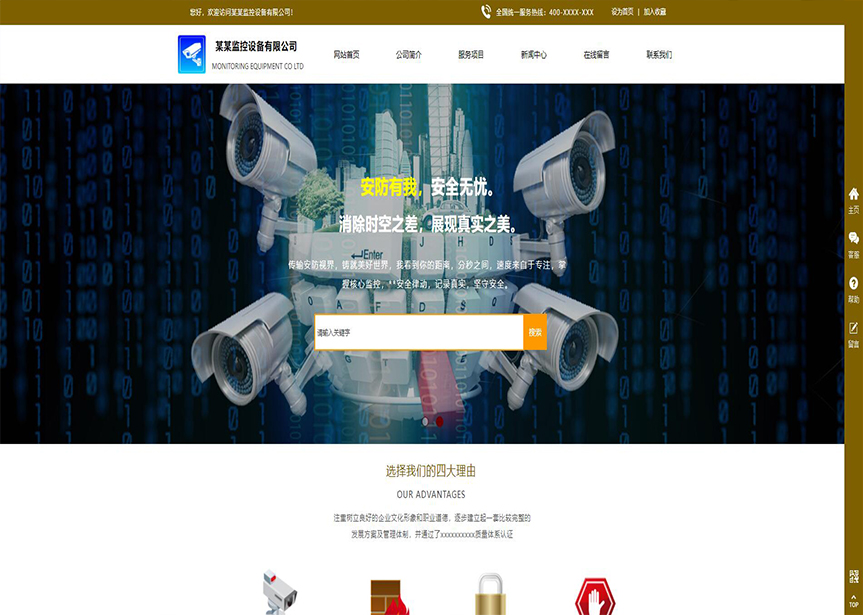 模板名稱:(帶手機版數(shù)據(jù)同步)自適應(yīng)安防監(jiān)控器材類通用網(wǎng)站模板