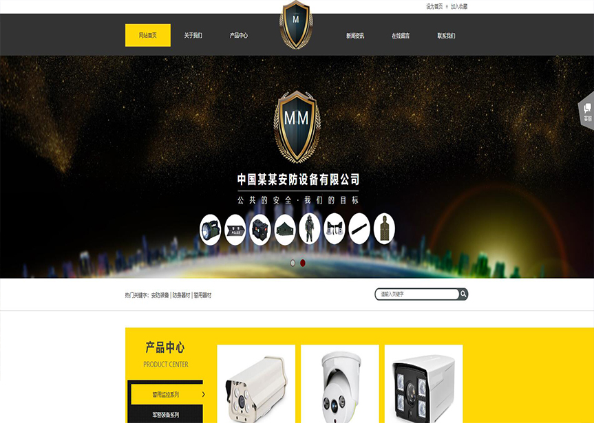 模板名稱:(帶手機版數(shù)據(jù)同步)自適應(yīng)安防監(jiān)控器材類黃色網(wǎng)站模板